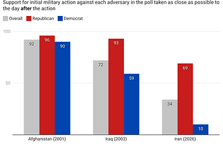 Support for the U.S. attack starts at 34% - 44% Your weekly political data roundup for March 1, 2026.