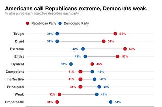 Americans, including swing voters, see the Republican Party as 20 points more extreme than Democrats — and the Democrats as weak and ineffective. So why…