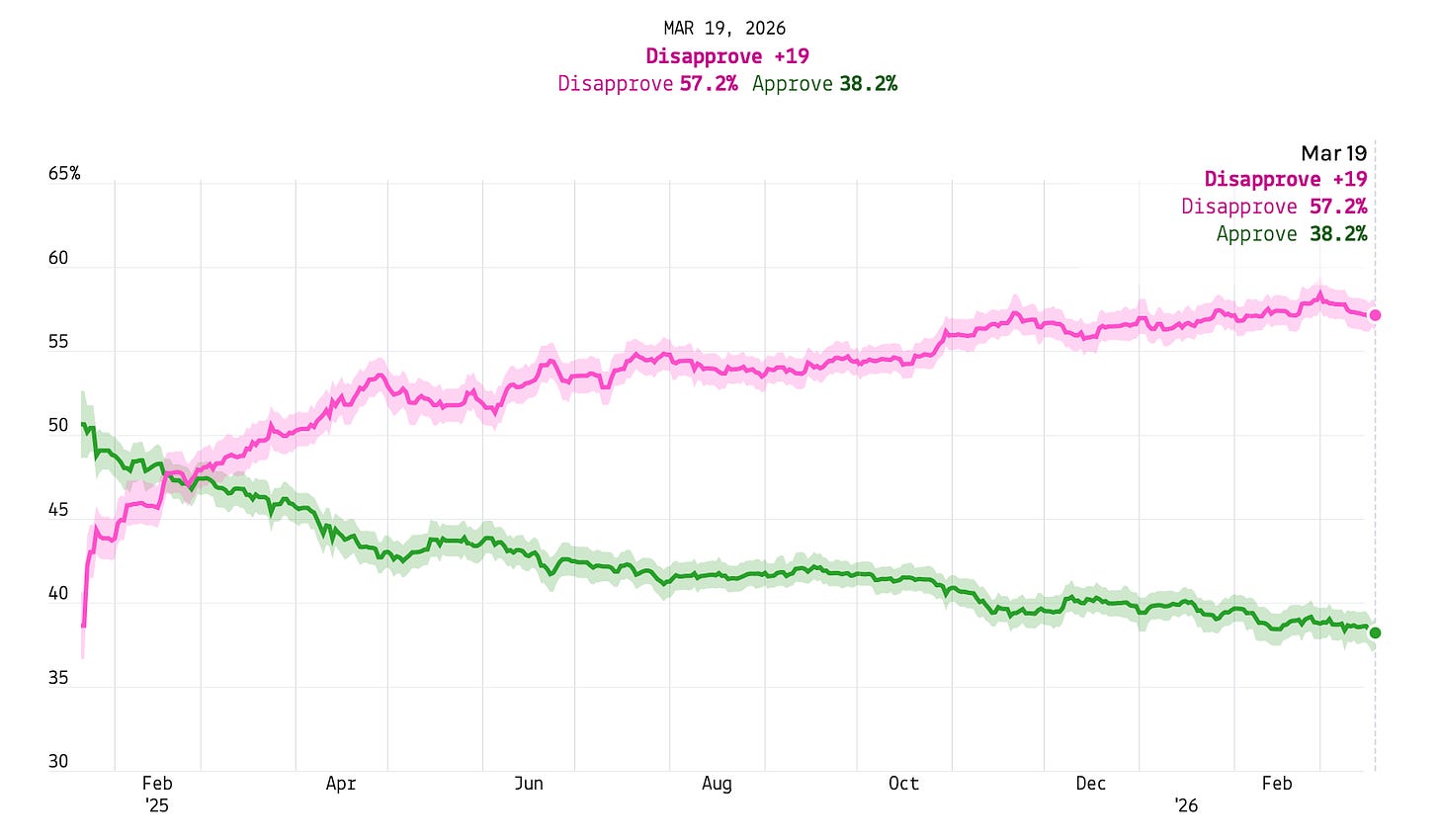 Elections in America today are first and foremost about economic conditions. Trump won in 2024 largely because voters blamed Biden for high prices. Now he’s chosen to start a war that is making prices worse — and a majority of Americans already say it’s not worth the cost. $5-a-gallon gas is not a political problem he can spin his way out of.