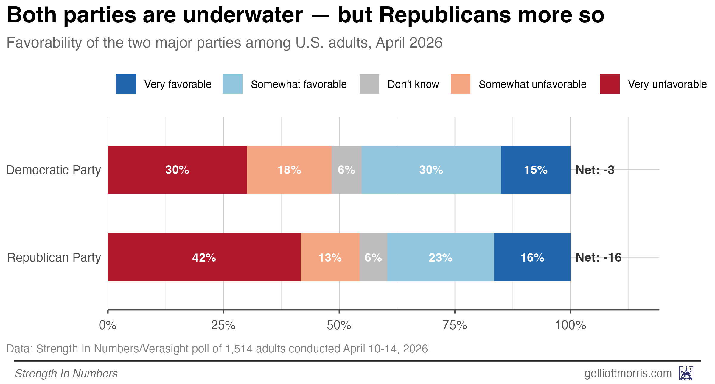 New April Strength In Numbers/Verasight polling finds both parties underwater on favorability, but Republicans are much worse off