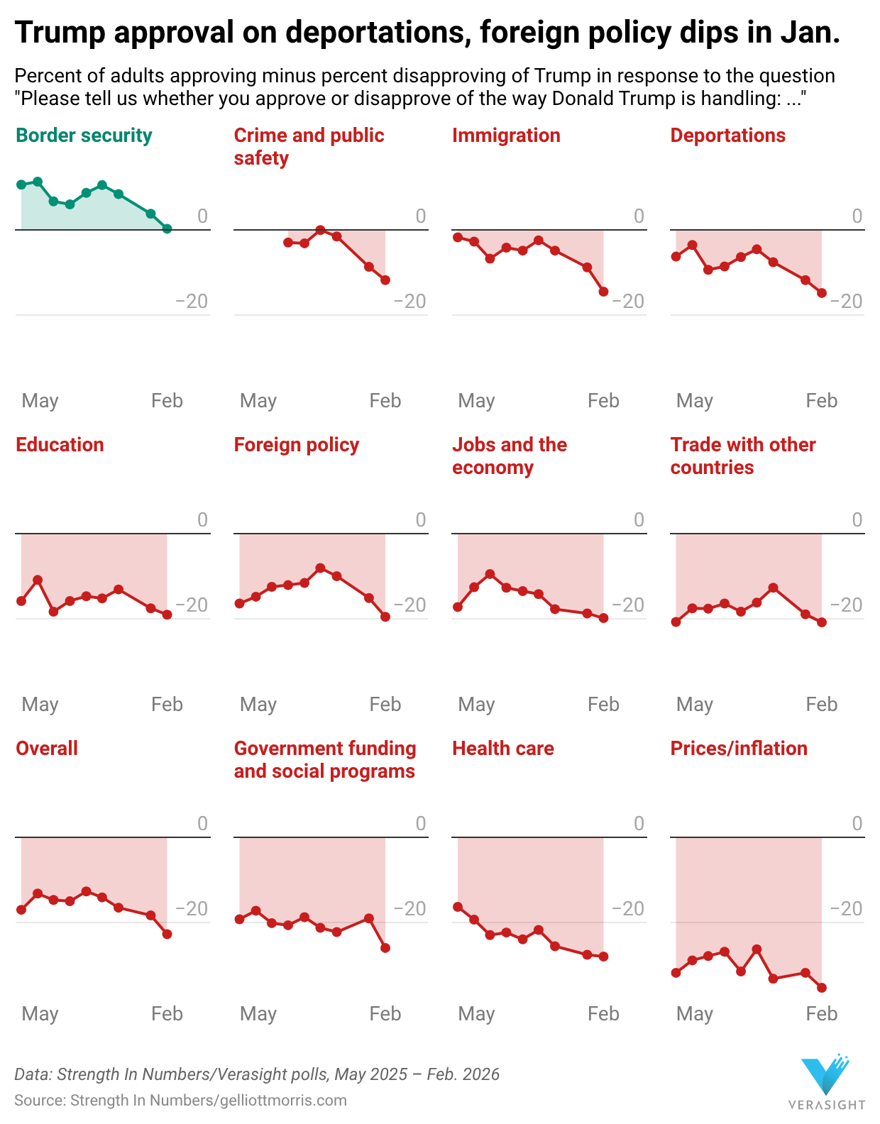 Instead, Trump spent the bulk of his address on immigration enforcement and trade — two issues on which he is deeply underwater and where public interest is weakest.