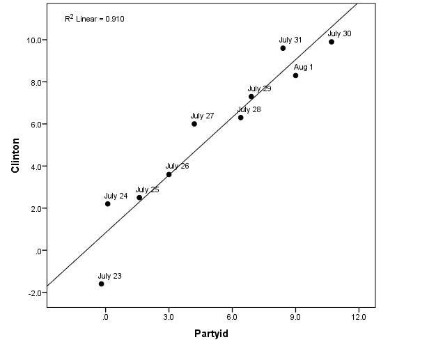 But the theory of this objection is certainly theoretically sound; if a poll did have too many Democrats in it, it probably would overestimate support for Democratic candidates. No surprise there. There’s even some evidence that this happens in practice: