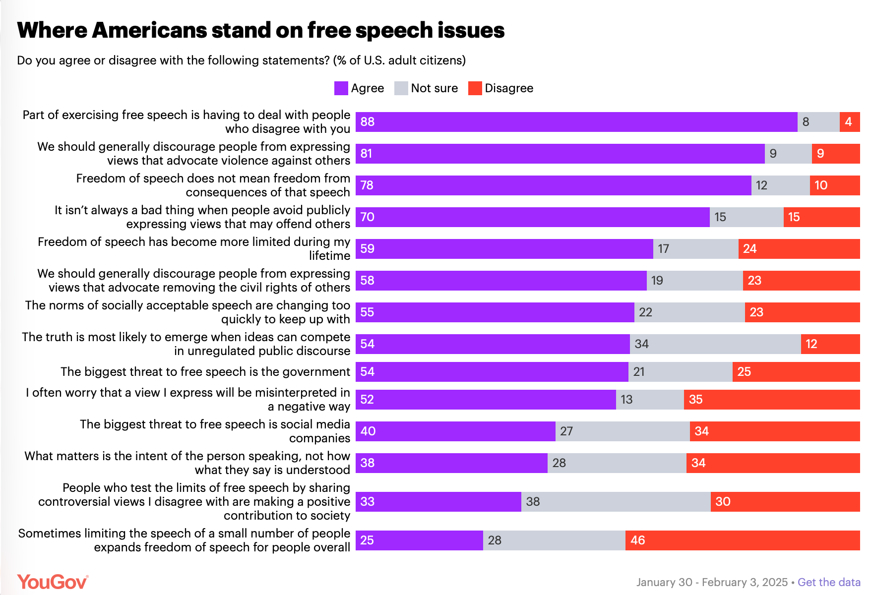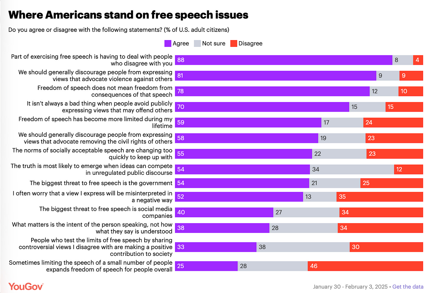 Looking at the polling data, Carr and Trump are really betraying the public here. It is worth reflecting briefly on the popularity of free speech in America today:
