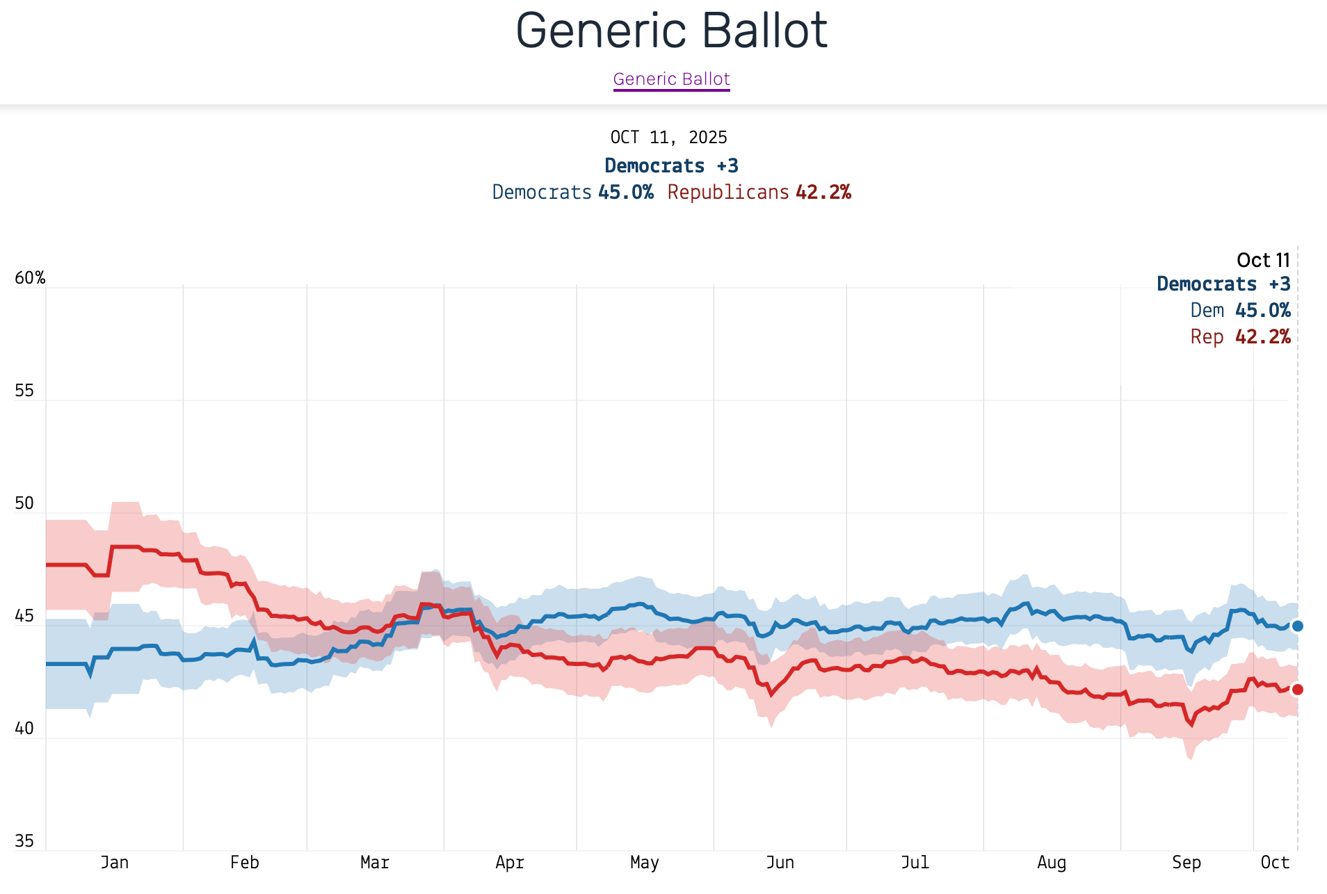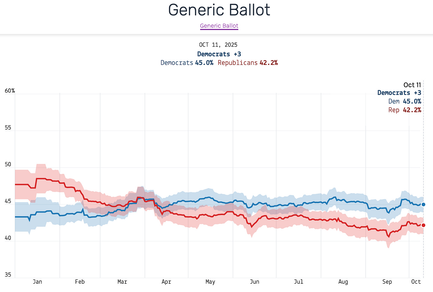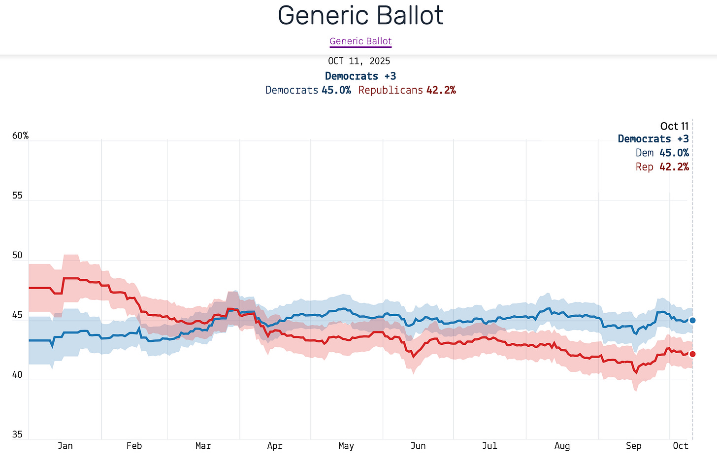 Let’s look at more than just 2 polls, though. I can’t access the old FiveThirtyEight polling average, but according to an average of many additional polls from RealClearPolitics (which I only recommend when other data isn’t available), Republicans led by roughly one point in House popular vote polls heading into Election Day 2024. This makes for a 4-point swing toward Democrats since the polls in October 2024, Enten’s point of comparison — and a 5-point swing since Election Day (Republicans won the House by 2 points).
