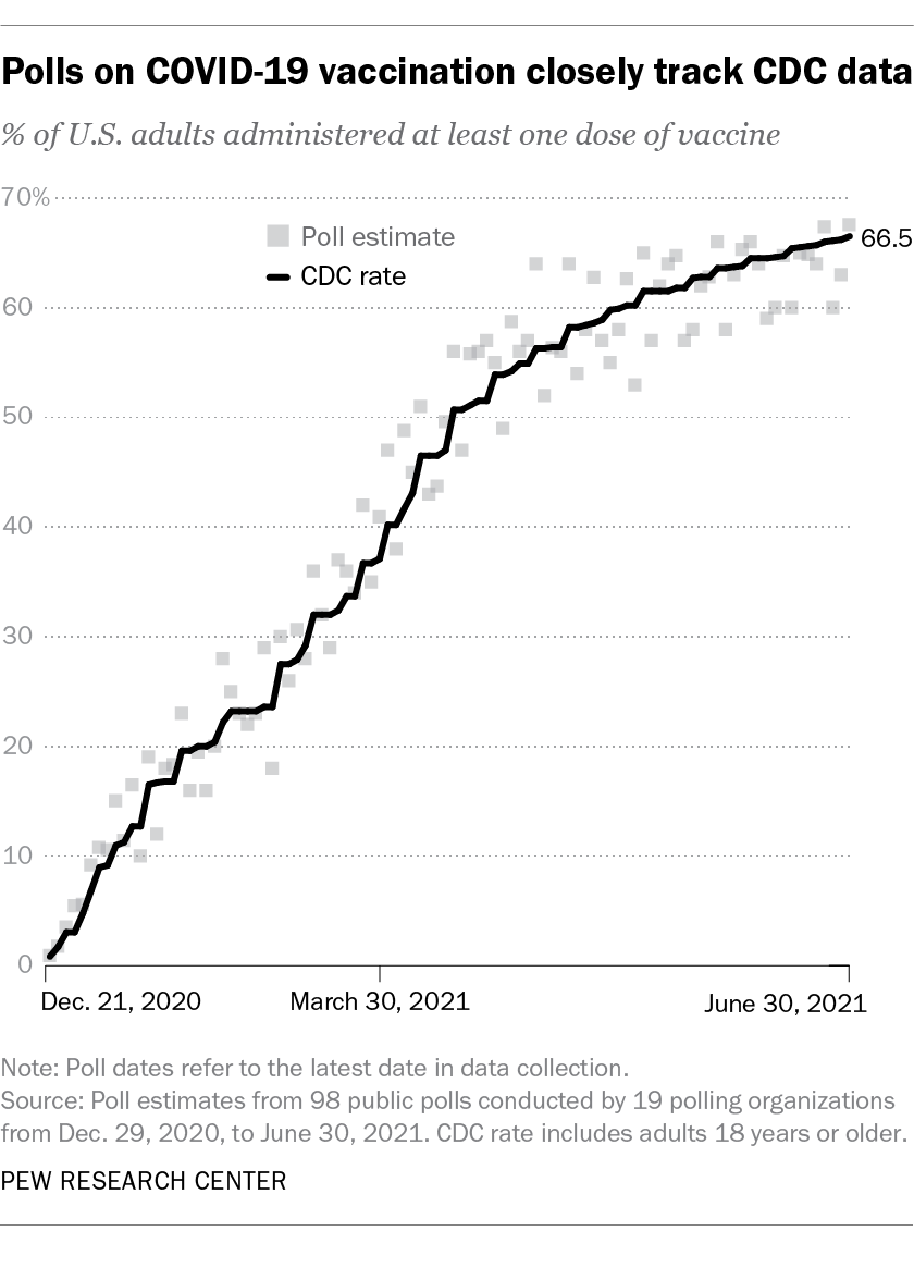Polls have tracked very close to the CDC's official record of how many people are vaccinated for covid-19, Pew says