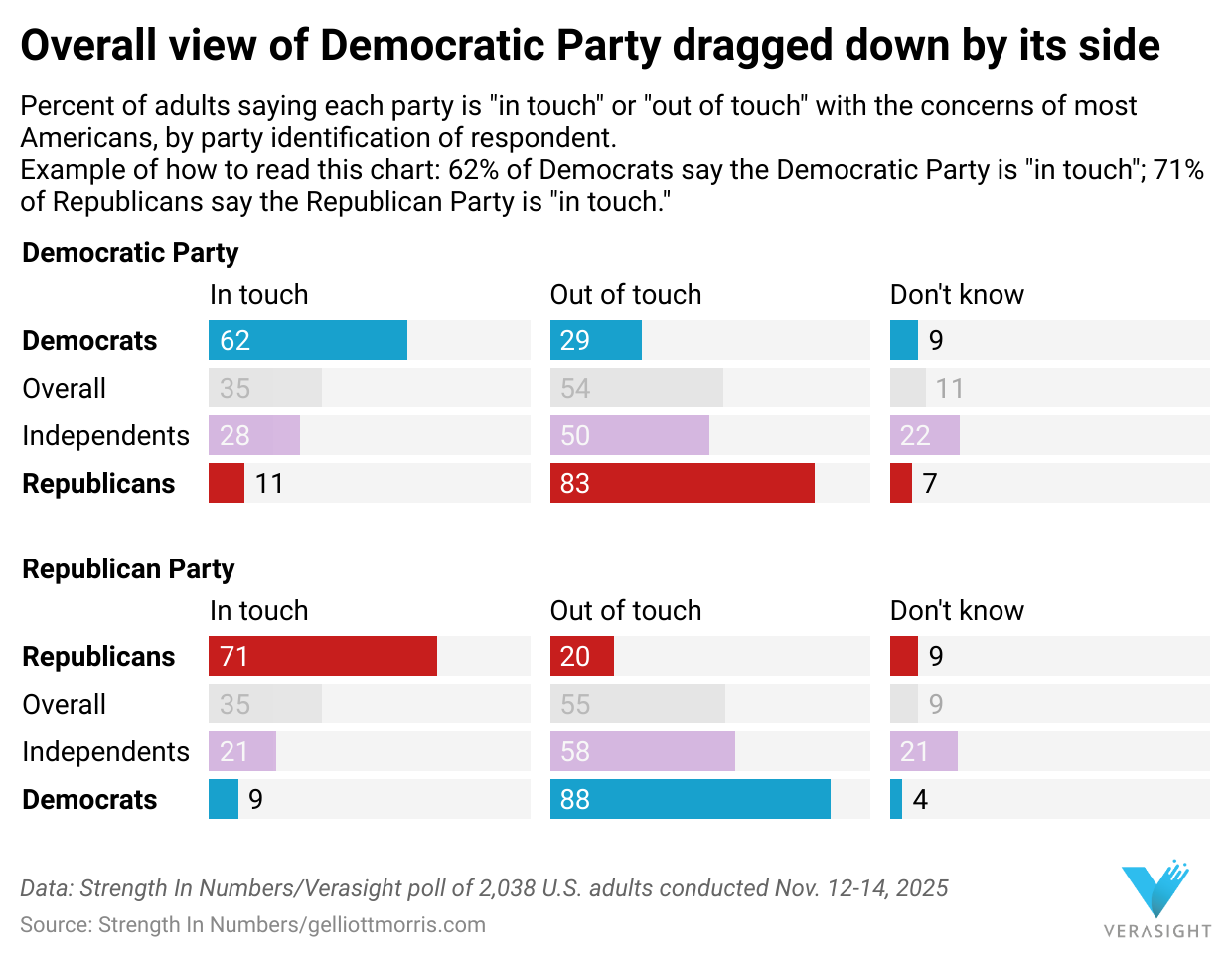 Both parties are seen as out of touch, but Democrats are dragged down more by frustration from their own left-leaning voters, even though those same “double-haters” still prefer Democrats in 2026.