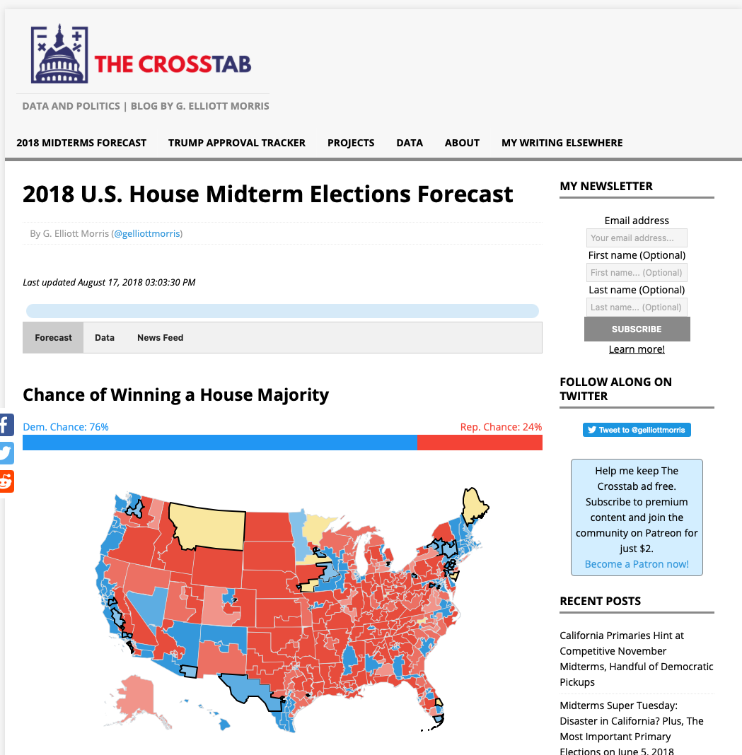 This quickly led me (back) to Substack. Most of you don’t know this, but I started Strength In Numbers originally in 2017, before I even had my job at The Economist. Then, the site was “The Crosstab,” a polling/forecasting blog and weekly data journalism roundup (and one of the OG Substacks!) that I wrote for fun in my spare time. I had to suspend operations while at ABC, but with my involuntary freedom and need for cash, I saw an opportunity: What if I took that weekly editorial foundation and added fresh polls and regular essays, and wrote about the things I covered in my book? Was there an audience for pro-democracy, data-driven journalism and handicapping from an independent voice?