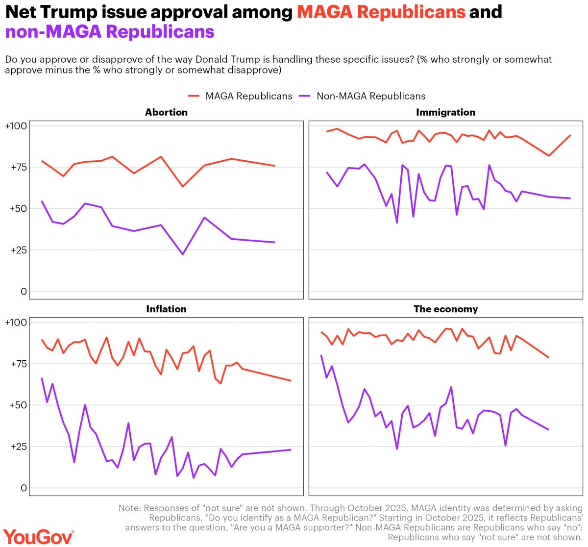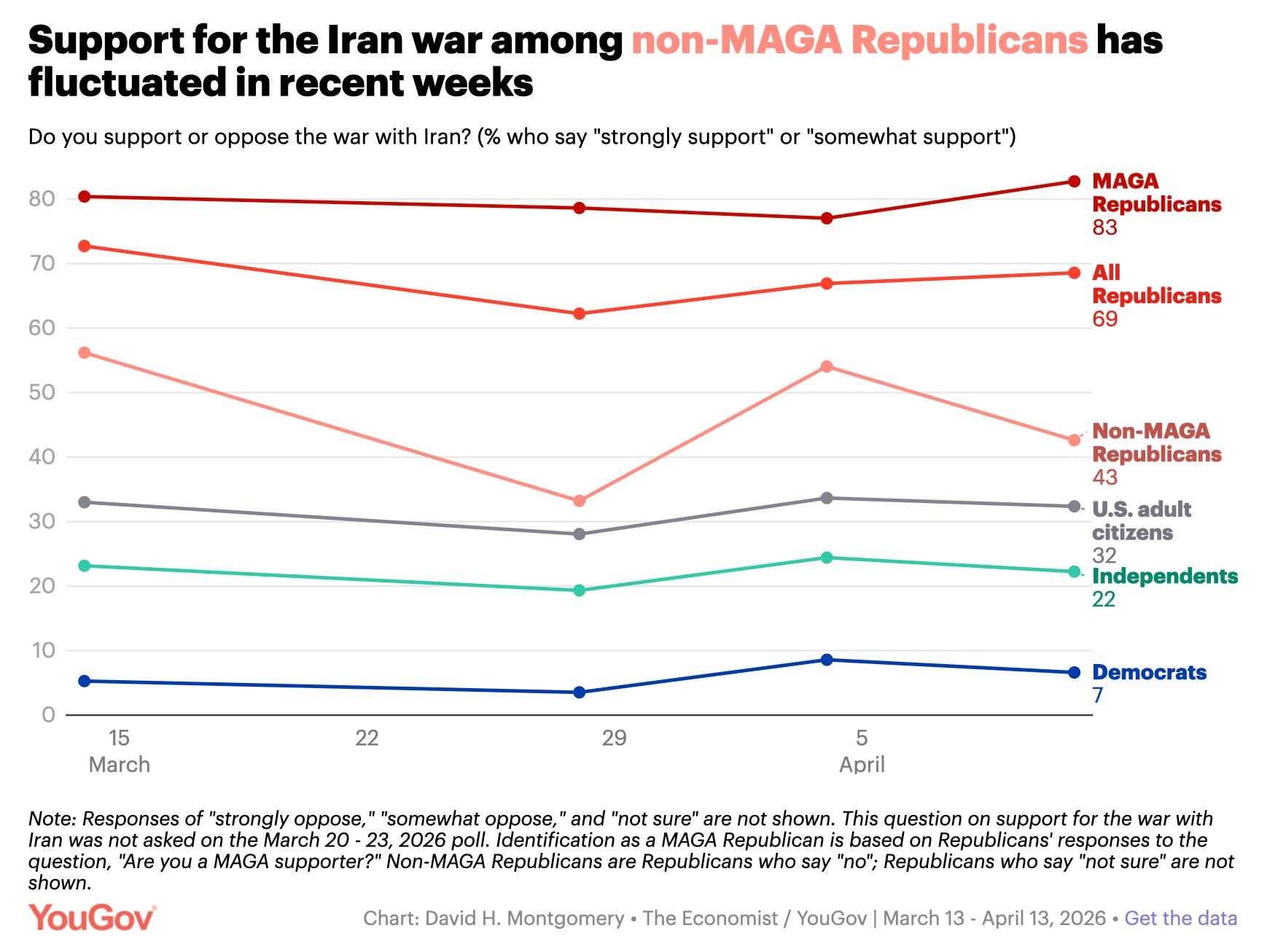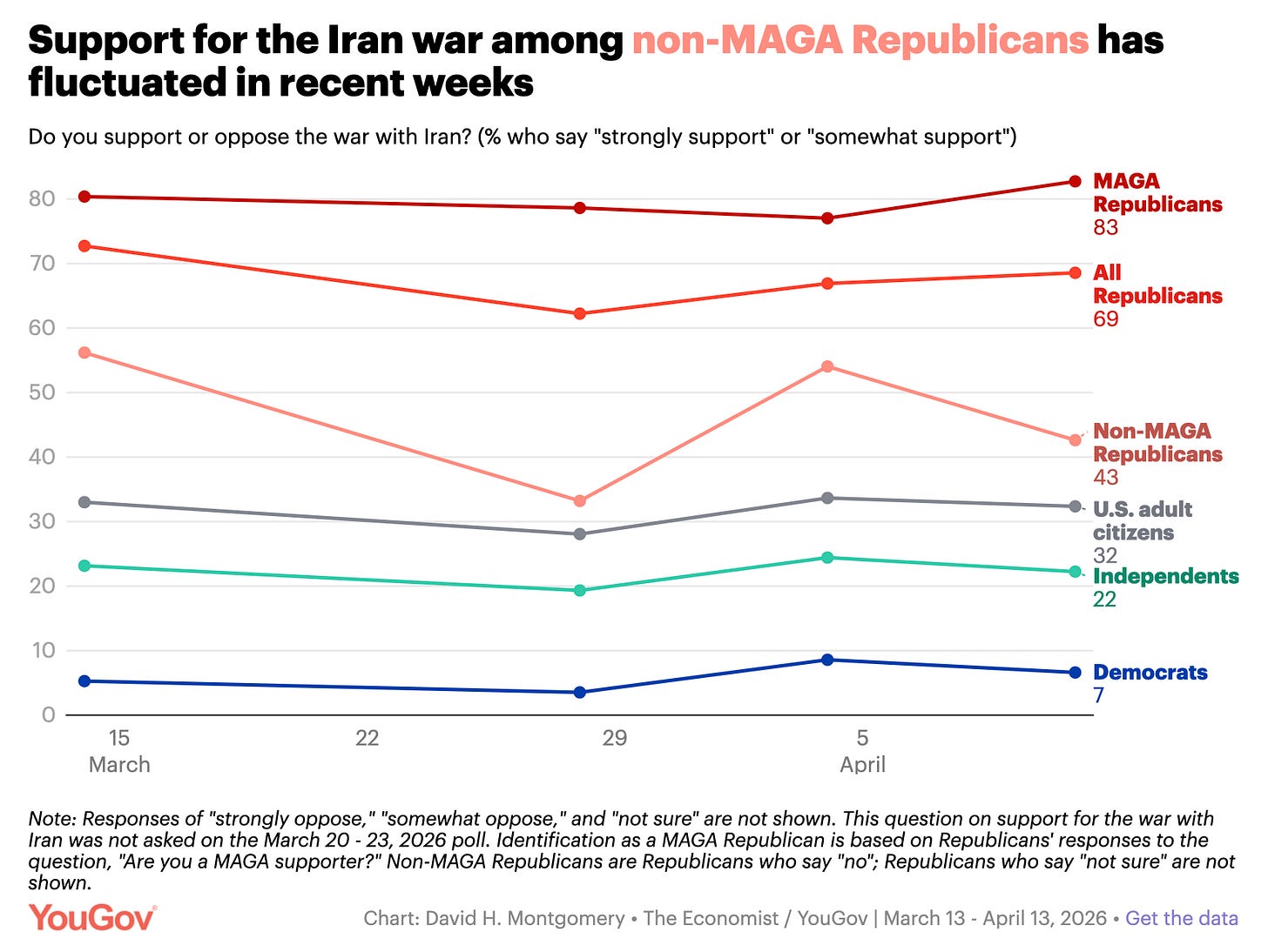30-35% who support you no matter what seems like an enduring political movement because it is not that hard to garner another 15-20% (and maybe 20% not necessary because of the structural advantages of big square states). But if the dumbass who is king does everything possible to scare off the 15% that is costly to the movement. No tariffs or war and MAGA is an enduring political movement despite torturing the undocumented, putting the most ill equipped people into cabinet positions and the corruption. Sounds like an enduring movement.