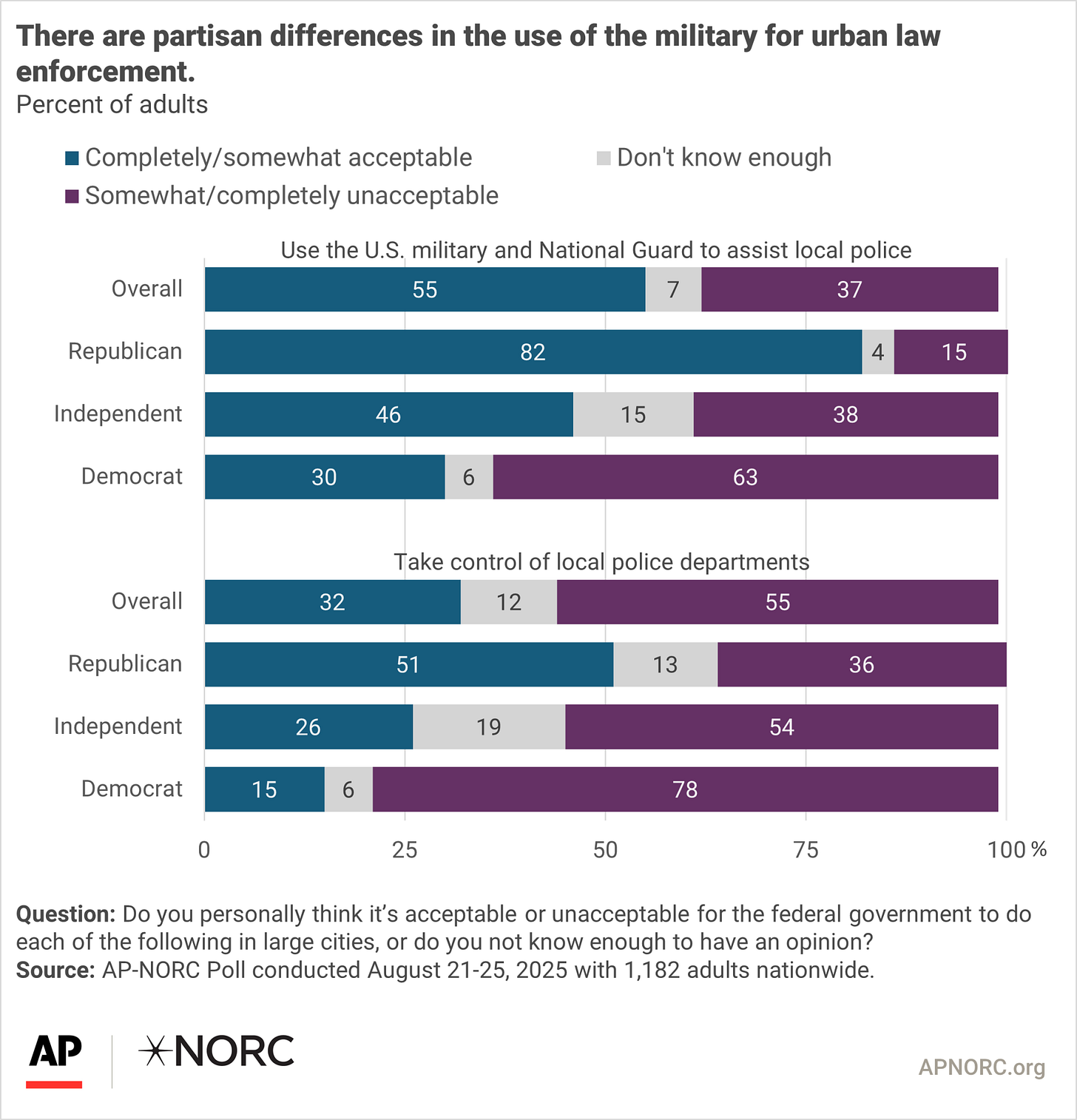 Be interesting to see the results, if people are asked whether they would choose more funding for local law enforcement, or sending in troops. The presence of the military in DC now, will mean nothing, as far as reducing crime over the next six months goes. Providing funding and expertise to communities, is what makes a difference, and what Democrats should emphasize.
