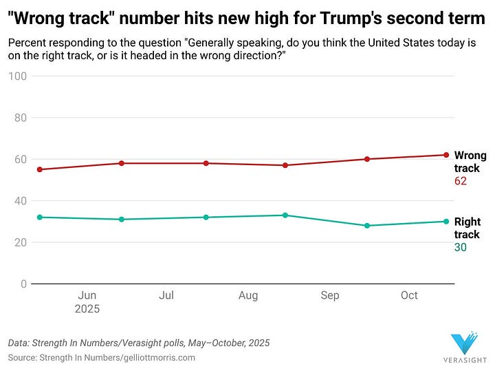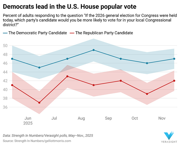 I want everyone who reads this newsletter to suggest one question you’d like us to track on a regular monthly basis in 2026. These questions should be suited to trending (ie, visualizing on line charts) and relevant over the course of the whole election cycle (January - November; we’re going to take December 2026 off). The comments are open below for your suggestions.