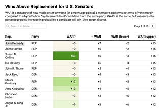 Out estimates of the Wins Above Replacement for U.S. Senators as of 2024