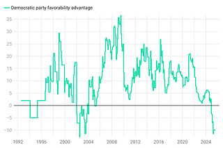 The party has a near-historically low favorability rating. This is mostly due to disaffection on the left, where voters still say they'll vote…
